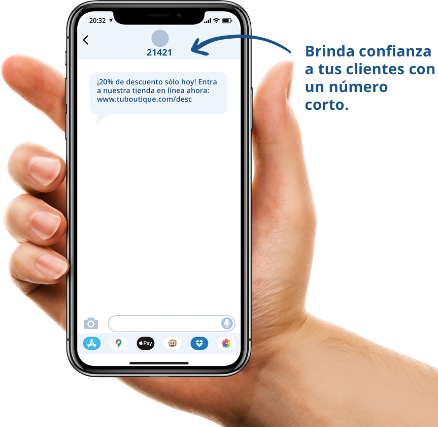 Todos nuestros mensajes se envían de números cortos para aumentar la confianza de tus clientes.