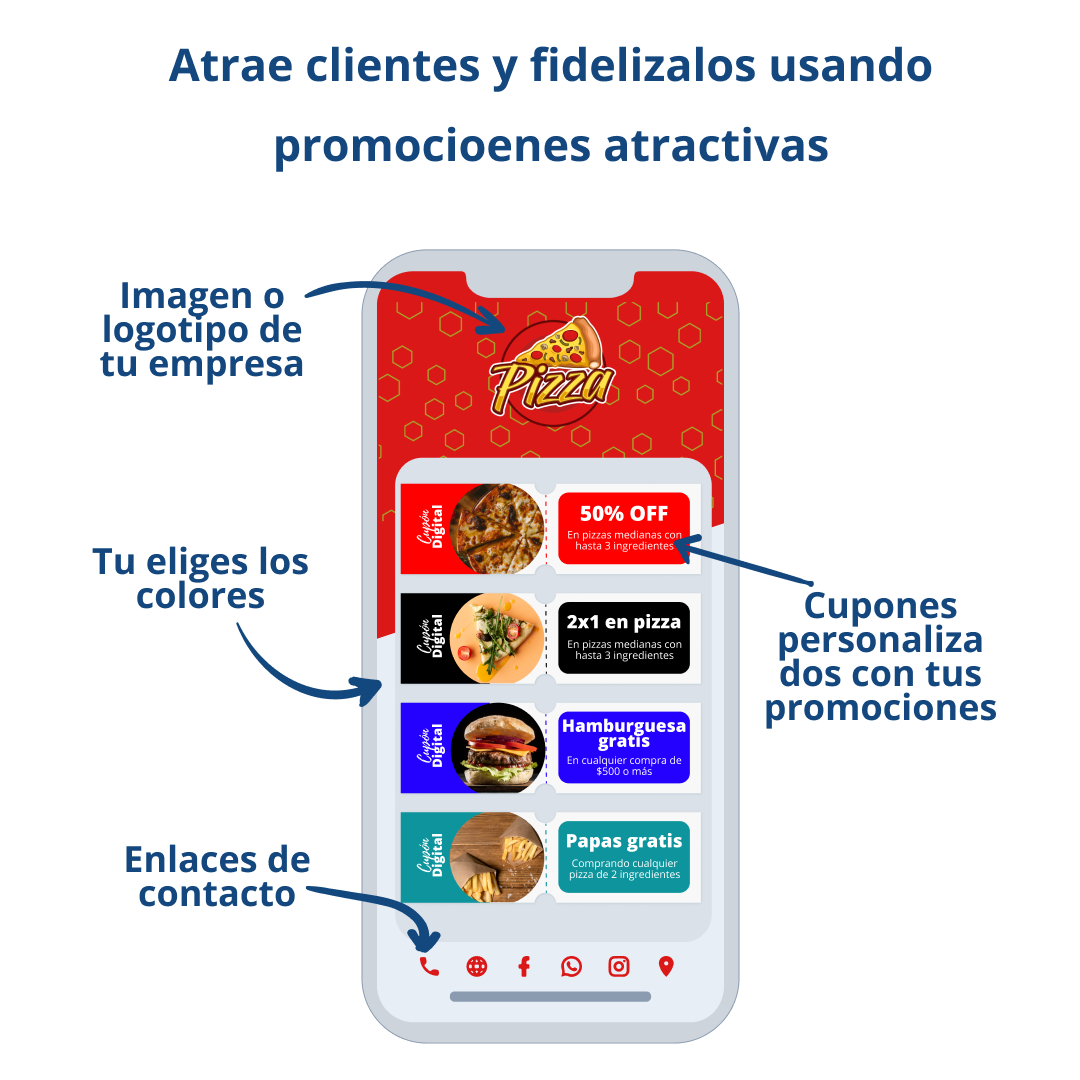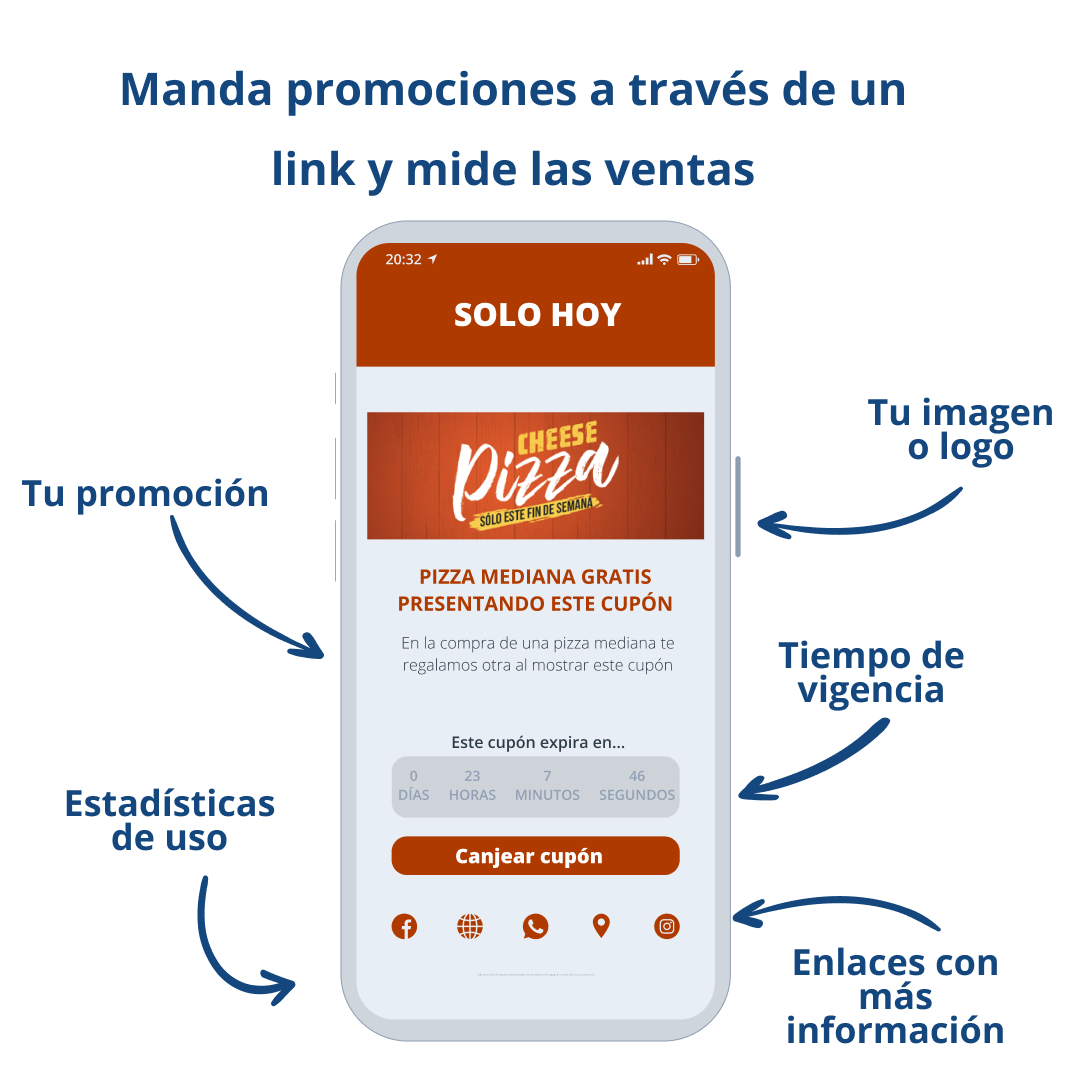 Envía cupones con promociones a tus clientes, nadie se puede resistir a una buena promoción de su empresa favorita, es la mejor forma de incrementar tus ventas y generar recurrencia.